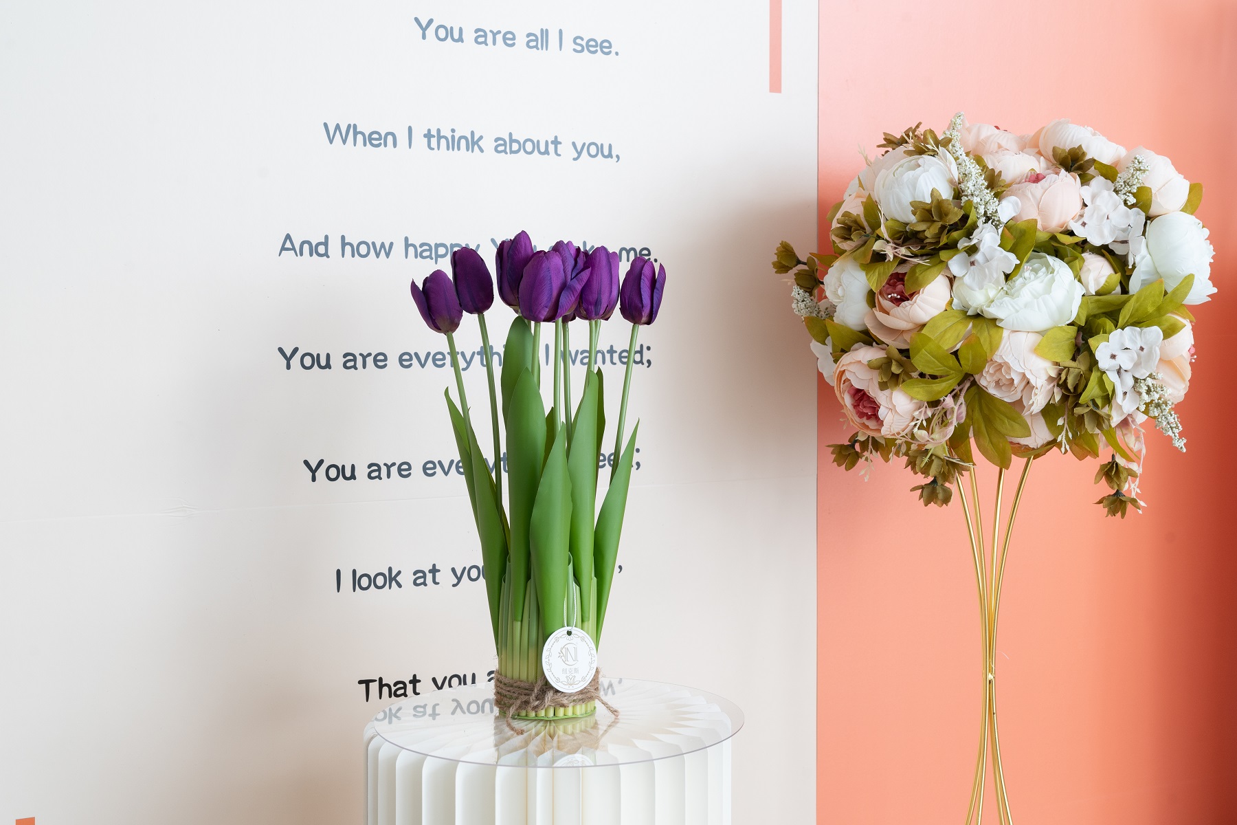 仿真花天山郁金香盆栽黄色;花被片长25-35毫米,宽4-20毫米;外花被片背面有绿紫红色、紫绿色或黄绿色色彩,内花被片黄色,甚至外三片变成暗红色,内三片变成淡红或淡红黄色,有时内花被片红色;叶彼此紧靠而反曲。6枚雄蕊等长,花丝无毛,花丝中上部多少突然扩大,向基部逐渐变窄;几无花柱。蒴果卵圆形,种子扁平,近三角形。